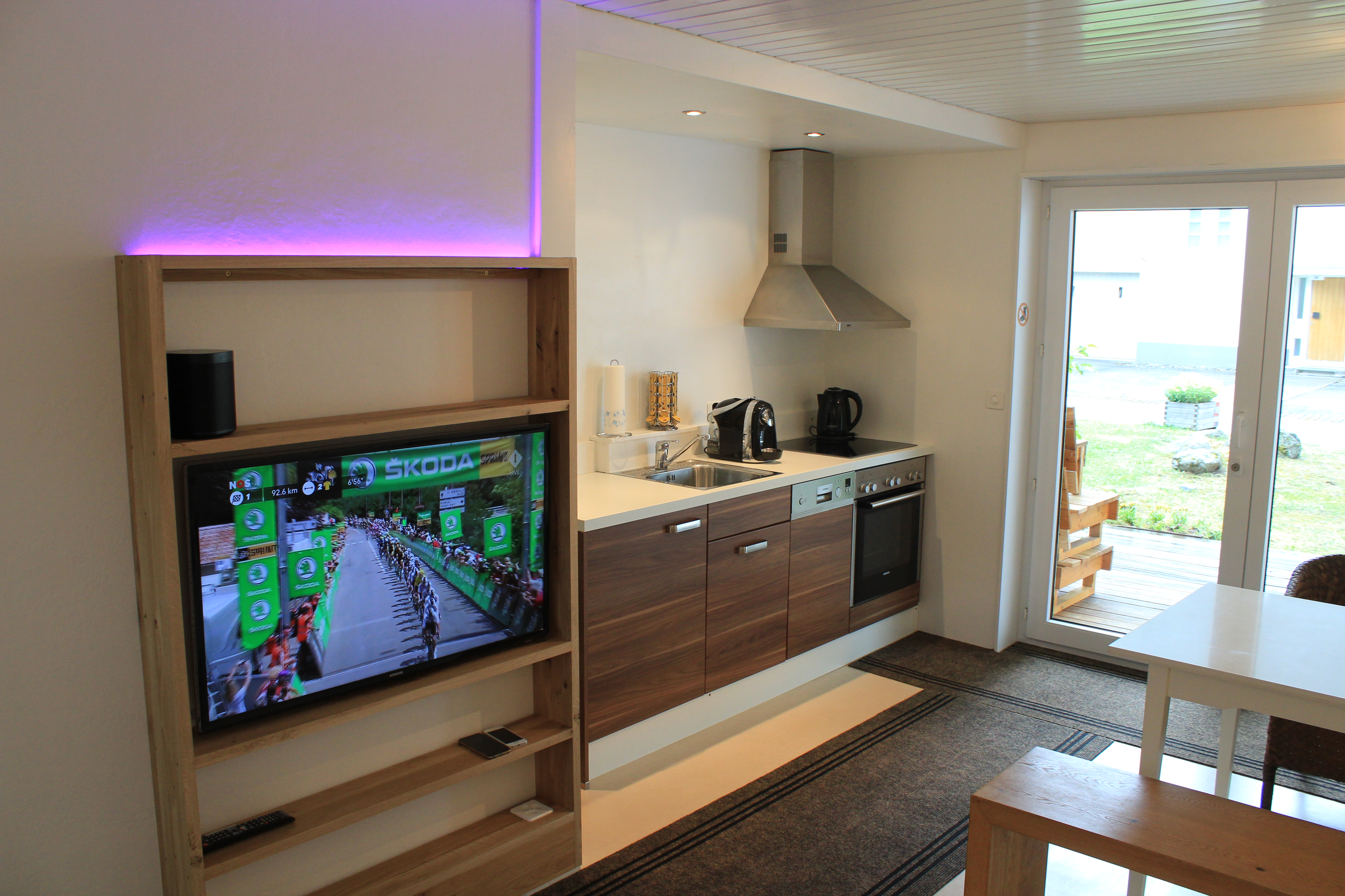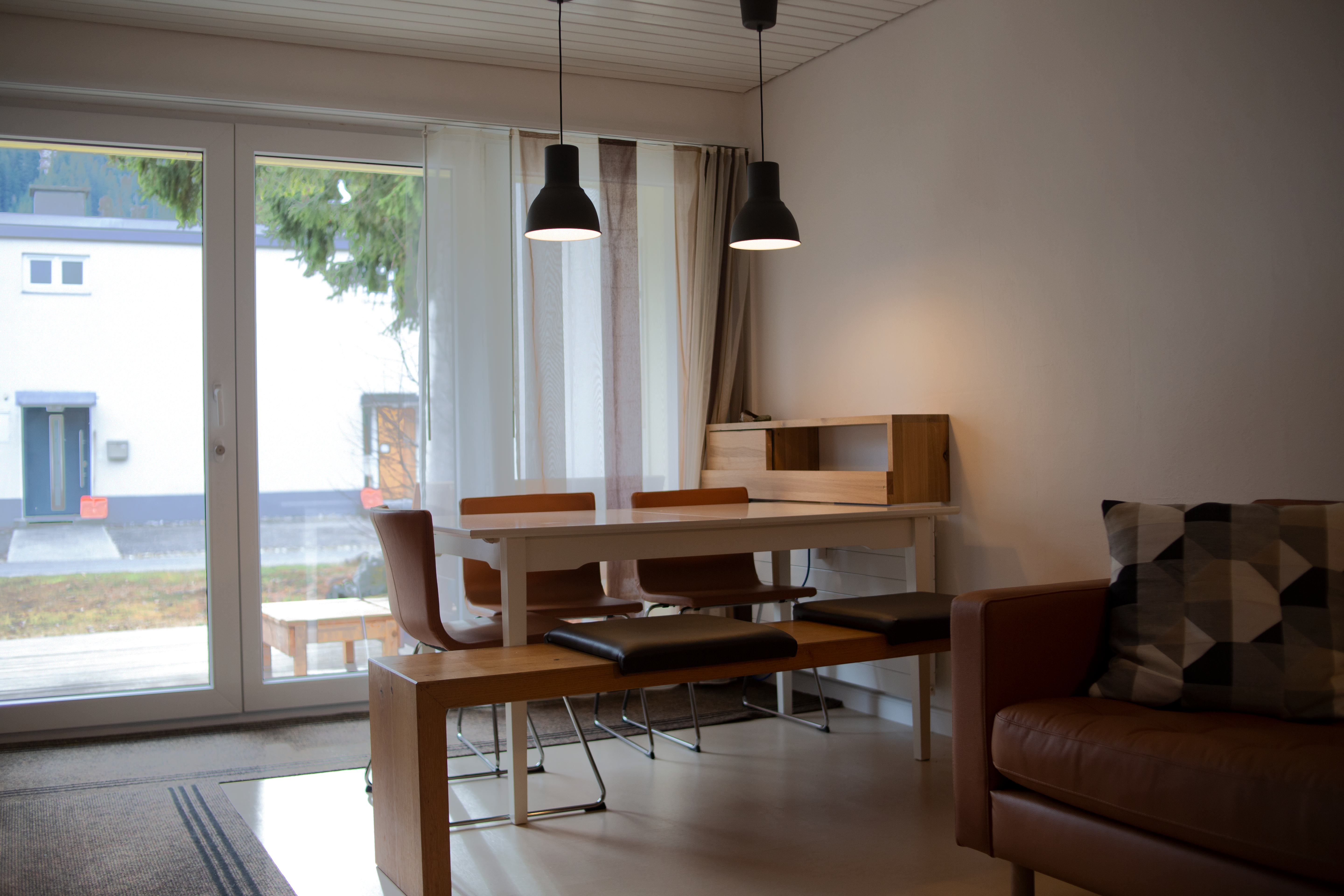 Das Reihenhaus ist eine 3 Zimmerwohnung die auf zwei Etagen aufgeteilt ist (56m2). Das Ojekt liegt an einer ruhigen Lage und beinhaltet einen Gartensitzplatz sowie einen Südbalkon. Ein Parkplatz steht unseren Gästen zur Verfügung. Im Untergeschoss befindet sich das Wohn-/Esszimmer mit Küche, sowie ein Badezimmer. Im Obergeschoss stehen zwei Schlafzimmer zur Verfügung. Eines mit Doppelbett und Lavabo und eines mit Kajütenbett.